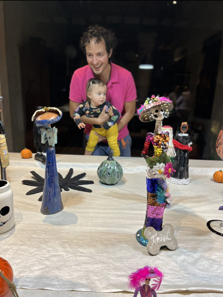 Byli jsme se podívat i u našich sousedů v Tequisu. Mají také obří dům s obřím sklepem, který využívají jako hernu, bar, pracovnu a TV room. K oslavě Halloweenu tam měli výstavku Catrinas – barevné, nazdobené kostřičky, které vypadají jako z filmu od Tima Burtona. Vane se hystericky rozbrečela u jednoho mluvícího kostlivce v životní velikosti. A jako já bych asi taky měla co dělat, kdybych tam šla sama – myslela bych si, že zpátky živá nevyjdu. Už se těším, jakou výzdobu připraví na Vánoce :-).