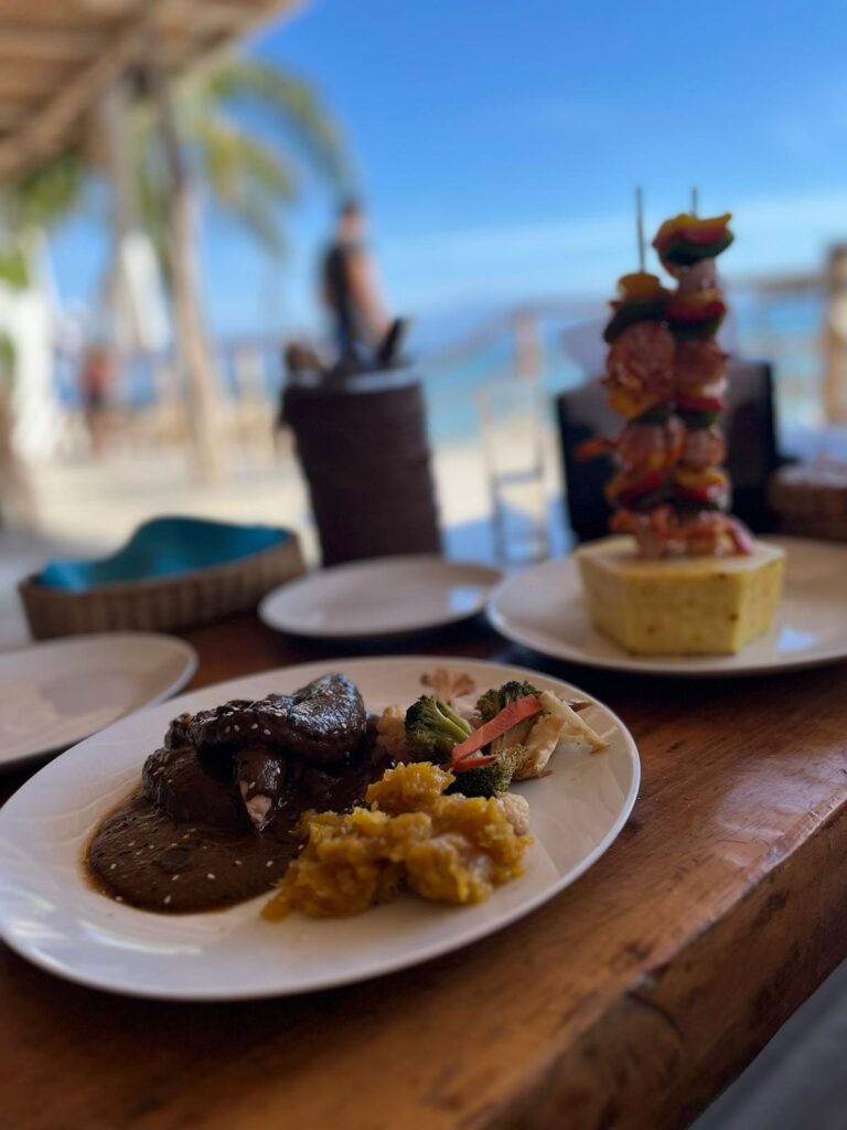 PULPO DE MOLE A CAMARON PIBIL V BEACH RESTAURACI SUKHASLAVNÉ HUEVOS RANCHEROS, KVŮLI KTERÝM SE PRÝ ERIK S HALEY PŘESTĚHOVALI DO BUCERÍAS 🙂